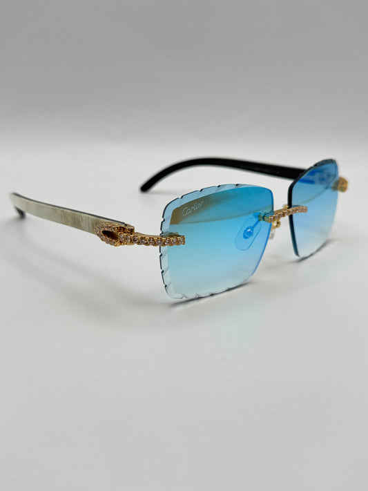 Iced out moissanite Diamond cut White Buffalo horn glasses